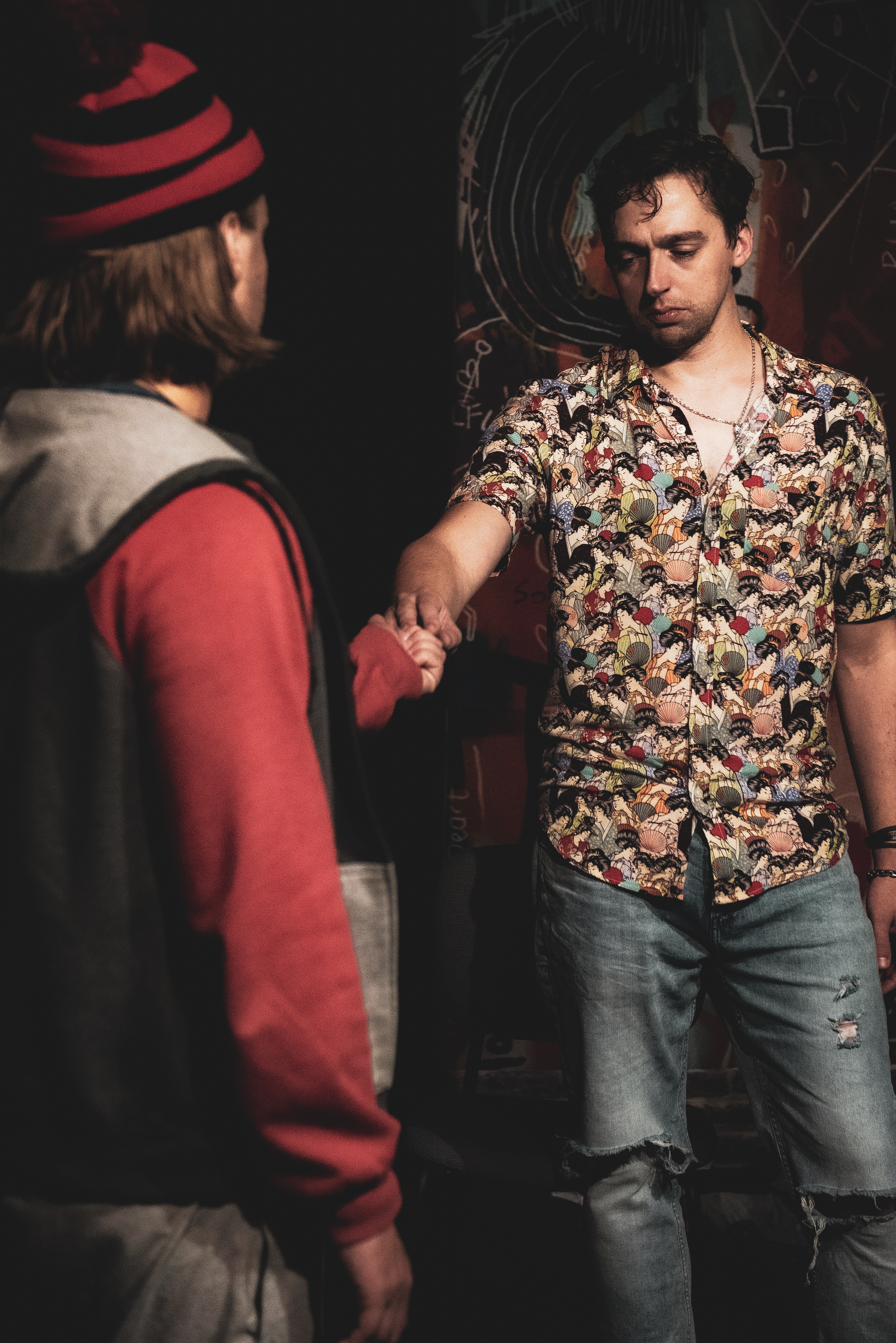 Real life brothers Daniel and Liam O’Kane are magnificent as Matt and Jay. The sibling chemistry is strong, juggling the emotional intensity of revealing a secret with familiar brother-bickering over the minutiae. Matt carries most of the anger and bitterness, accusing his brother of only being there as part of his addiction recovery steps, whilst Jay trembles with guilt and sadness. Both O’Kanes work brilliantly together, bouncing off each other’s words with distraction and new direction – just